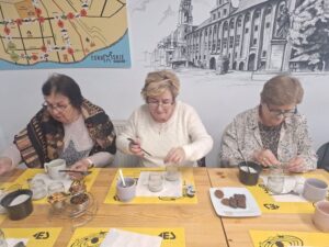 19 listopada 2025 roku uczestnicy klubu pojechali na wycieczkę do Torunia w gościnne progi przedsiębiorstwa społecznego „4 ES non profit spółka z o.o.” gdzie wzięliśmy udział w warsztatach na których robiliśmy pierniki i świece świąteczne. Później poszliśmy na spacer z przewodnikiem po starym Toruniu.