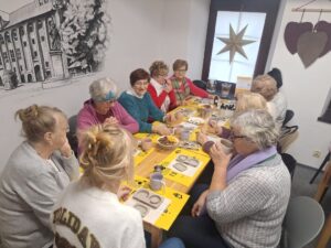 Klub seniora ”Nasza Ostoja” swoją przygodę z bombkami rozpoczął 9 grudnia br. O godz. 10.00. Przyjechała Ola Kamycka i rozpoczęła się praca z tworzeniem cudownych bombek, małych arcydzieł.